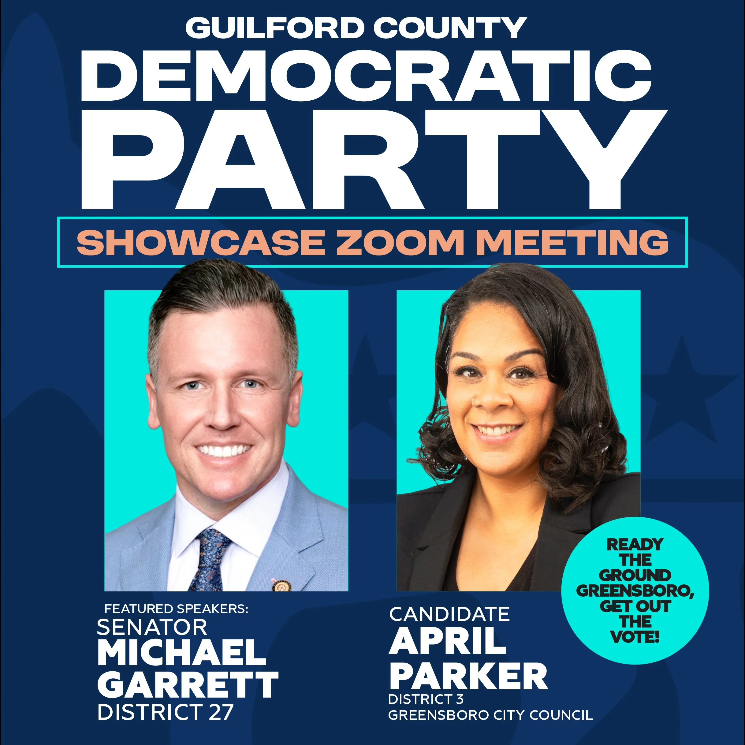 Ready the ground and get out the vote. Featured speakers include Senator Michael Garrett and Greensboro City Council candidate April Parker. -